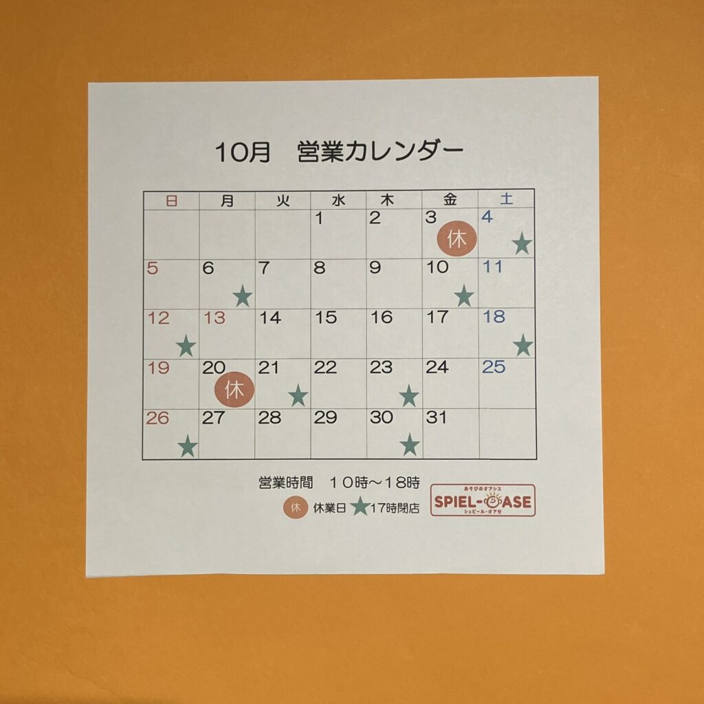 10月は3日と20日が休業日です。★マークが通常より1時間早い17時閉店となります。
