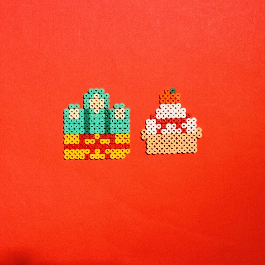 12月はアイロンビーズでクリスマス・お正月のモチーフ作りや12月のカレンダー作りです。